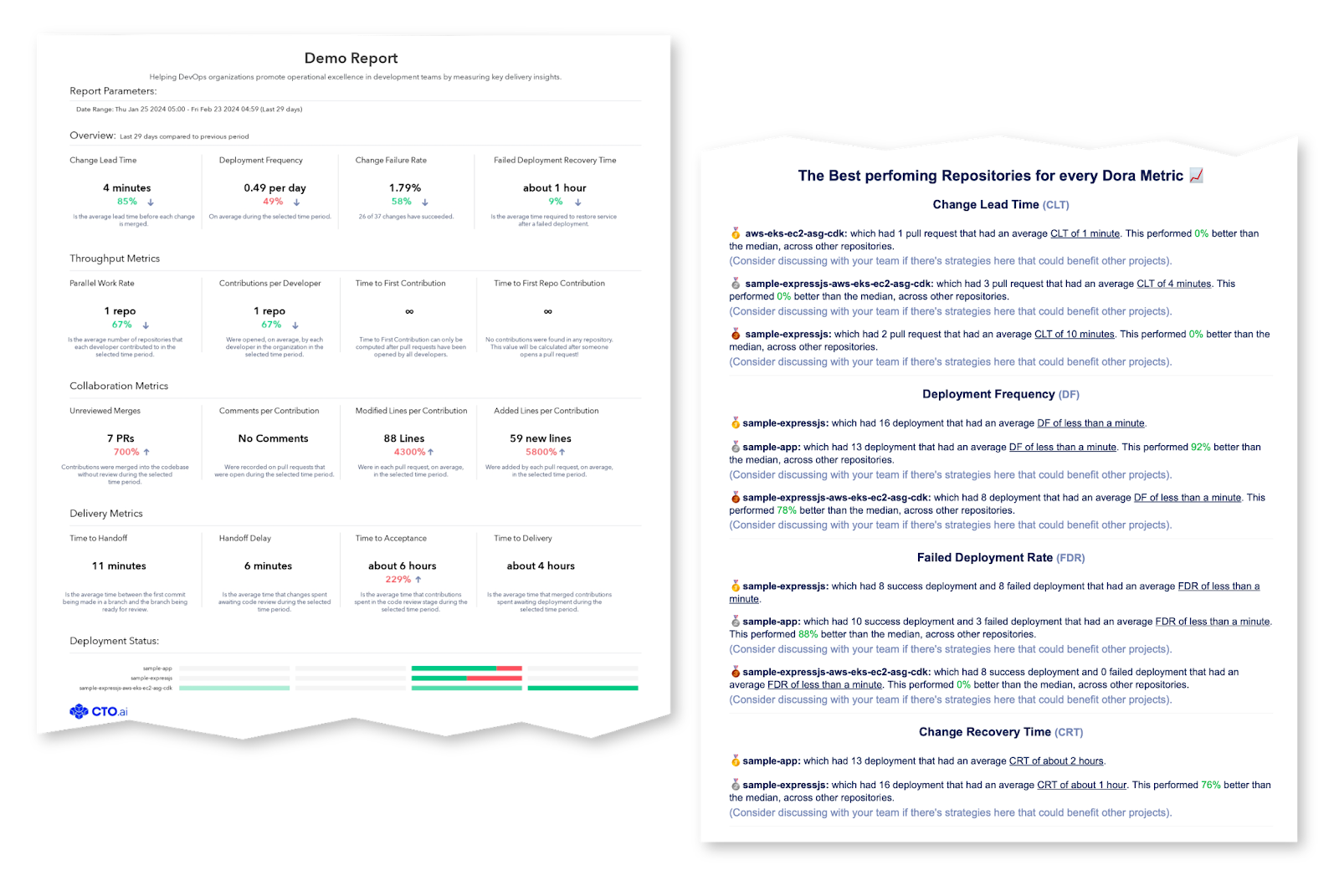 If you’ve been using CTO.ai for some time now, you’re likely already familiar with how the CTO.ai platform can receive Lifecycle Events—from your integrated development tools, workflows run on our platform, or calls to the API—then display your data on the Insights Dashboard. With this update, we’re adding new reporting capabilities, computing an extra set of (12 additional!) metrics, and highlighting what’s working within your team.